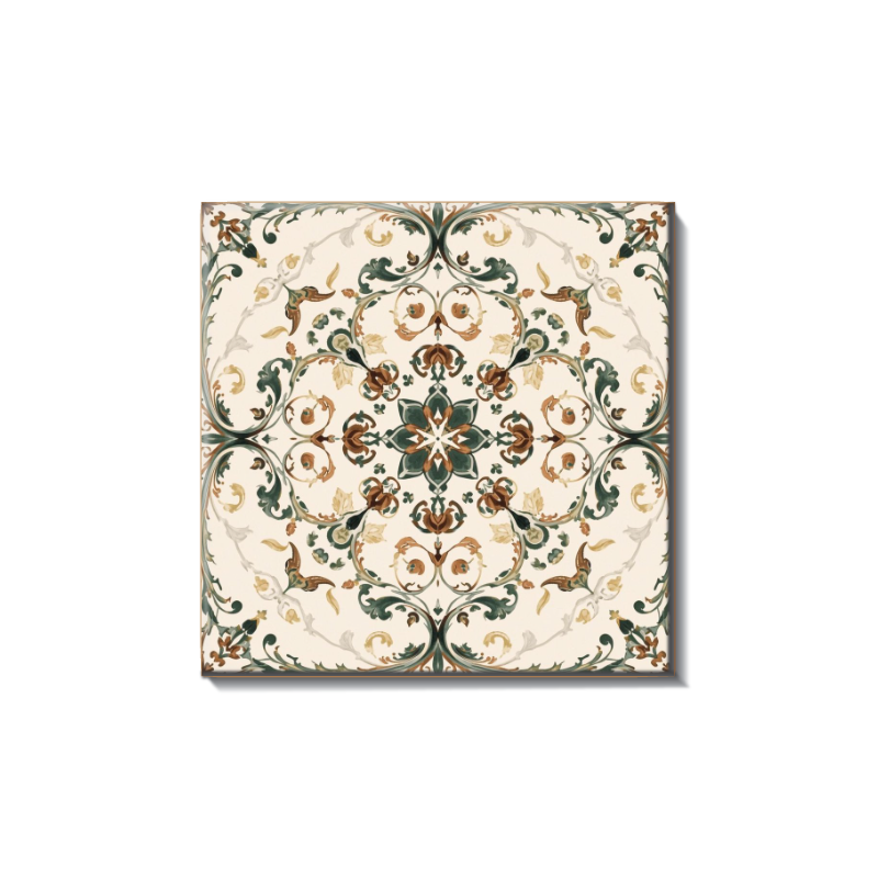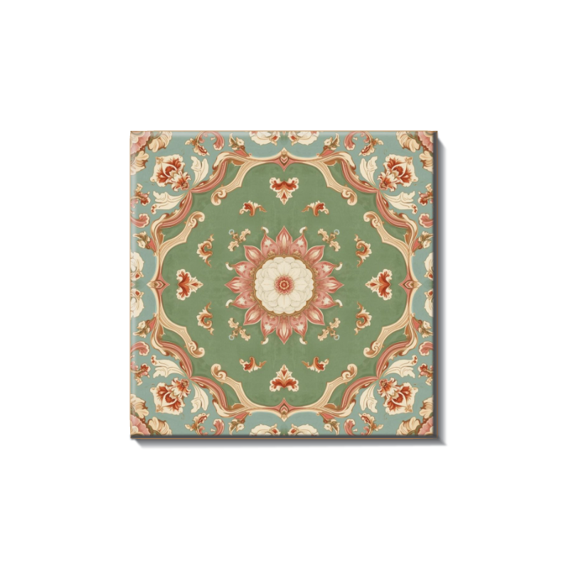 Floral & Medallion tiles feature elegant botanical motifs and ornamental centerpiece designs.